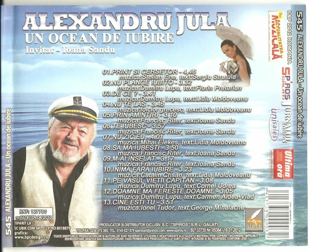 Alexandru Jula, Invitat: Ioana Sandu – Un ocean de iubire (2012, Spiros Galaţi 545) – CD